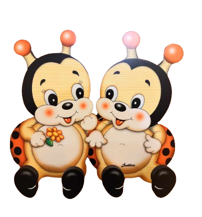 Appendiabiti in legno con due coccinelle. Le dimensioni sono 30x27x7cm. Linea Bartolucci, made in Italy.