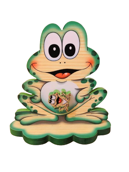 Carillon Rana in legno con base, dimensioni 11x16cm circa. Linea Bartolucci, made in Italy.