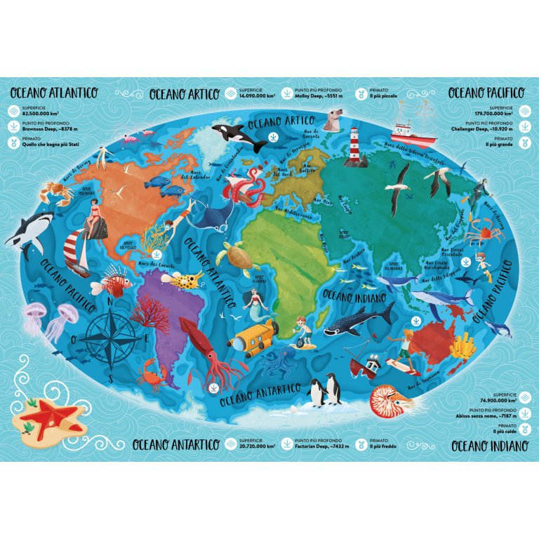 Questo libro della serie Cosa, come, perché esplora vari aspetti dei mari e degli oceani, risorsa fondamentale per la vita sulla Terra, attraverso la formula domanda-risposta. La Terra è in gran parte coperta di acqua: oceani, laghi e fiumi costituiscono il 71% della superficie terrestre, il che spiega perché, quando guardiamo il nostro Pianeta dallo Spazio, lo vediamo come una grande palla blu. Quando si sono formati gli oceani e i mari? Qual è la differenza tra mare e oceano? Quali organismi vivono nell’ecosistema marino? Libro di 64 pagine in italiano. Casa editrice Sassi Junior.