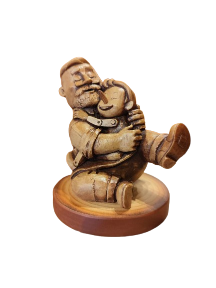 Geppetto con Pinocchio in un simpatico abbraccio. Altezza del Geppetto 12cm circa, diametro della base 10cm.