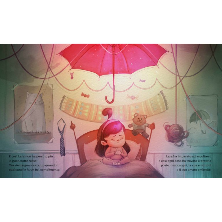 Una storia dolce e delicata sull’abbandono degli oggetti che accompagnano i bambini durante la crescita. Lara è una bambina molto timida. Così timida che per uscire di casa si nasconde sotto un grande ombrello, da cui non si separa mai. A Lara, però, manca davvero molto poter giocare liberamente. Così, un giorno, prova in tutti i modi a sbarazzarsene. Il libro è composto da 32 pagine ed è in italiano. Casa editrice Sassi Junior.