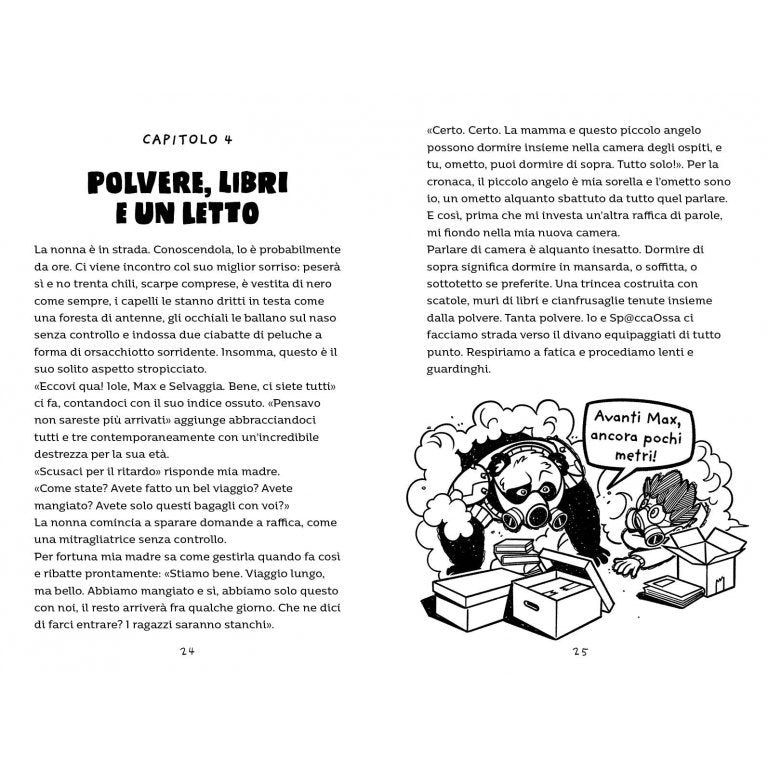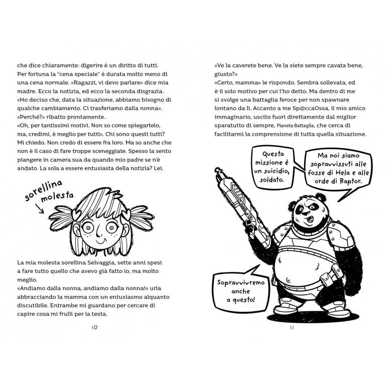 Max ha quasi undici anni, e trascorre le sue giornate fra compiti, videogame e documentari sugli animali. Ma la sua vita sta per cambiare. E lui non ama i cambiamenti, specialmente quelli che ti portano lontano, in un’altra città, in un’altra casa e in un’altra scuola. Per fortuna ad aiutarlo ci sarà il suo migliore amico Sp@ccaOssa, un panda di duecento chili a cui non mancano certo i buoni consigli. E Max ha davvero bisogno di buoni consigli, perché ha appena cominciato la scuola media e ha una certa propensione a cacciarsi nei guai, soprattutto se c’è di mezzo un nuovo amico da salvare.