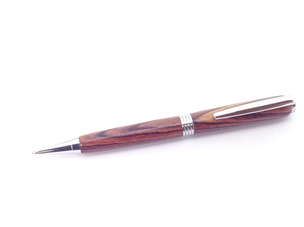 Penna a sfera in palissandro. La stessa, realizzata artigianalmente, potrà differire leggermente nel colore, nelle venature e nelle sfumature, rispetto a quella in foto. Realizzazione Oppici universolegno, made in Italy.