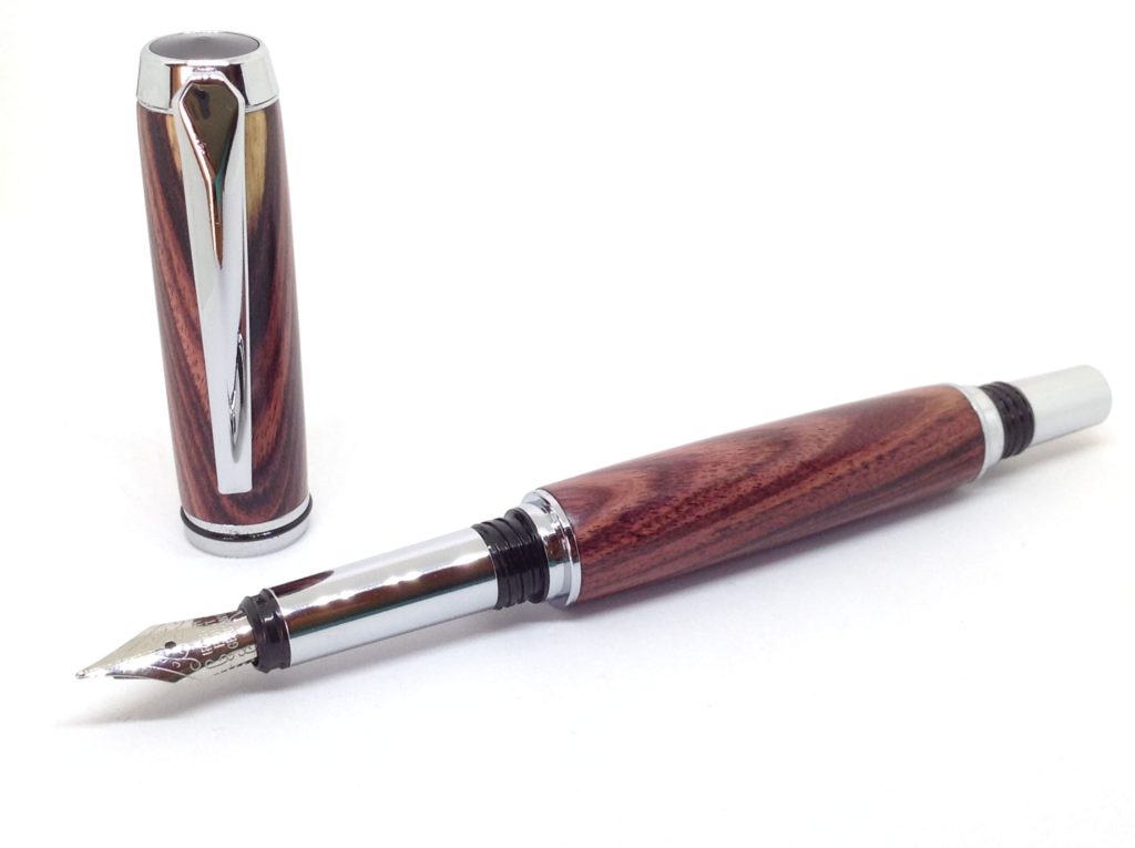 Penna stilografica in palissandro. La penna sarà corredata da cartuccia di inchiostro, attivabile premendo la stessa nell'apposito alloggio del puntale porta pennino. La stessa, realizzata artigianalmente, potrà differire leggermente nel colore, nelle venature e nelle sfumature, rispetto a quella in foto. Realizzazione Oppici universolegno, made in Italy.