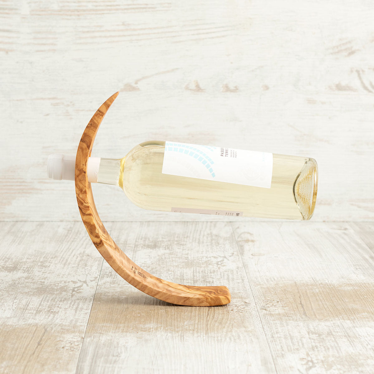 Porta bottiglia curvo in legno di ulivo. Il prodotto è artigianale, in legno naturale e lavorato a mano. L'oggetto presenterà lievi differenze in forma, dimensioni, sfumature e venature del legno, a garanzia della sua unicità. Dimensioni 27x5,5 circa. Nell'acquisto non è compresa la bottiglia in foto. Realizzato da Arte Legno Spello SRL, made in Italy.