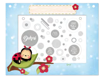 Portafoto Coccinella orizzontale, dimensioni 23x18cm, foto 13x18cm, in fibra di legno. Sul Portafoto è possibile inserire un nome. Linea Dekori, made in Italy.