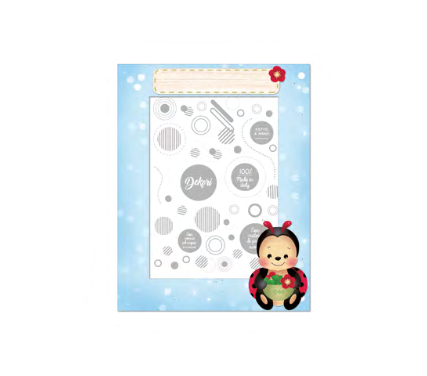 Portafoto Coccinella verticale, dimensioni 18x23cm, foto 13x18cm, in fibra di legno. Sul Portafoto è possibile inserire un nome. Linea Dekori, made in Italy.