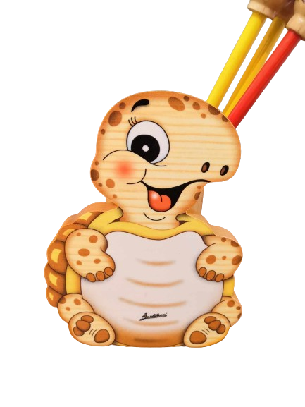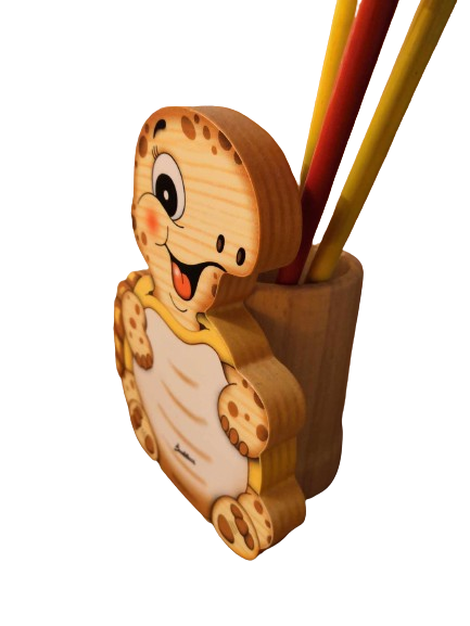 Portapenne in legno Tartaruga. Dimensioni 11x14x7 circa. Linea Bartolucci, made in Italy.