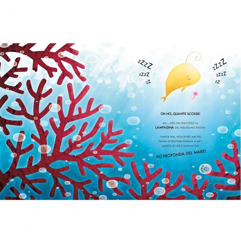 Leggi la dolce storia e ascolta dieci incantevoli suoni della natura, che ti accompagneranno lungo una narrazione ricca di magia. Le delicate illustrazioni rendono questa storia ancora più speciale e i suoni della natura, molto realistici, permettono al lettore di immergersi ancora di più nel racconto. Tra le onde del mare si aggira Zoe, una piccola medusa un po' sbadata; sta cercando qualcuno con cui fare amicizia! Ma... aspetta, hai sentito anche tu questa scossa? Sarà stata Zoe? Lasciati coinvolgere da questa avvincente avventura tra colorati coralli e numerose creature marine. Il libro è in italiano, composto da 18 pagine. Casa editrice Sassi Junior.