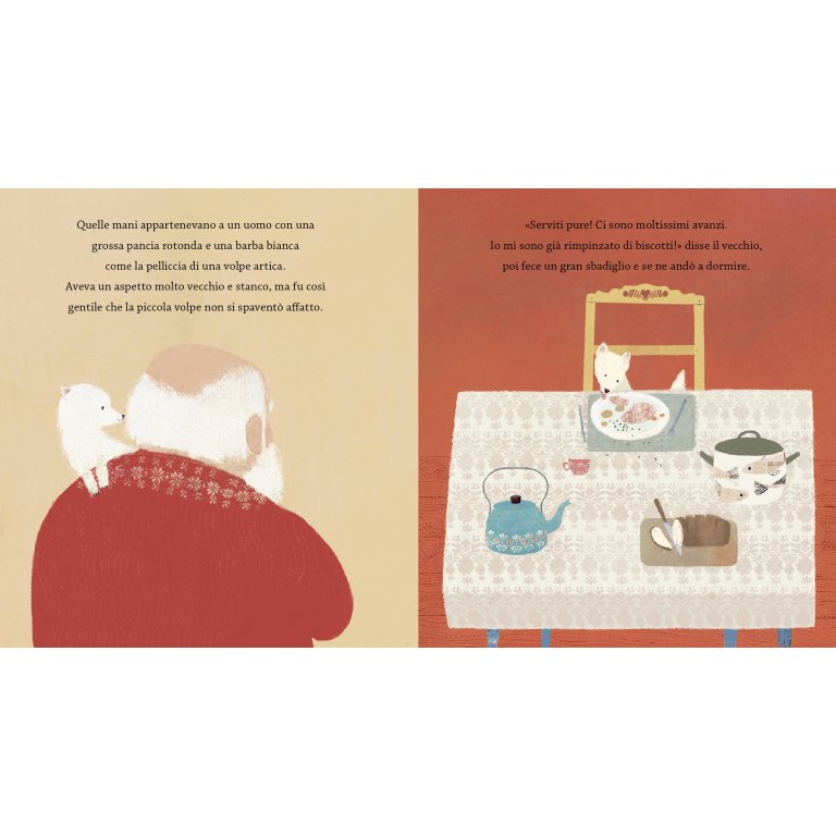 Una tenera storia di amicizia dedicata al vero significato del Natale. In una fredda notte invernale, una piccola volpe bianca è alla ricerca di un posto in cui rifugiarsi, quando, finalmente, riesce a trovare un accogliente riparo tra la neve. Passano le stagioni e la piccola volpe rimane con il gentile vecchietto che le ha dato ospitalità, un personaggio molto particolare e sempre più indaffarato. Fino a quando, la Vigilia di Natale, i due partiranno insieme per un viaggio indimenticabile… Il libro è in italiano, di 32 pagine. Casa editrice Sassi Junior.