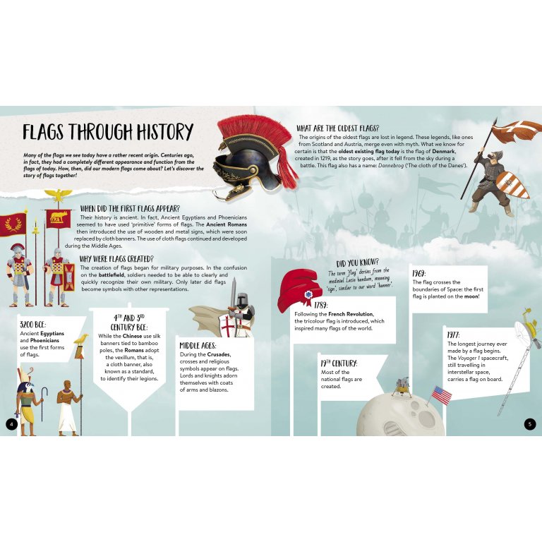 Un atlante di facile lettura che, grazie a un’impostazione domanda-risposta, stimola la curiosità, la capacità di analisi e il pensiero indipendente. Poche cose sono più rappresentative per uno Stato della propria bandiera. Quanti tipi di bandiere esistono? Quante sono quelle ufficialmente riconosciute? Perché si scelgono determinati colori? I loro simboli hanno un significato? Un atlante ricco di interessanti informazioni per rispondere a questi e a tantissimi altri interrogativi sui vessilli di tutto il mondo! Libro in inglese di 64 pagine. Età 6+. Casa editrice Sassi Junior.